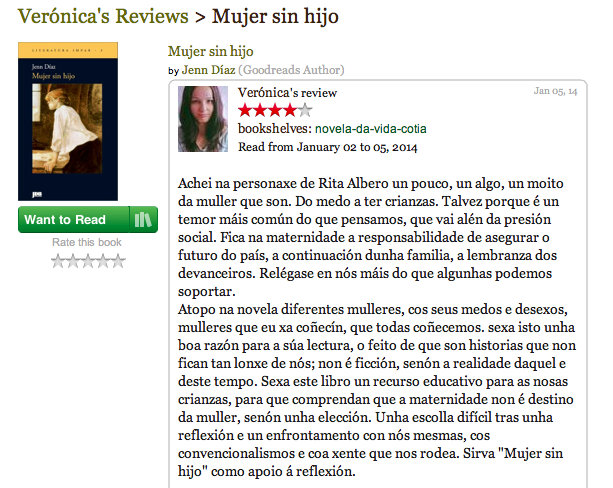 Achei na personaxe de Rita Albero un pouco, un algo, un moito da muller que son. Do medo a ter crianzas. Talvez porque é un temor máis común do que pensamos, que vai alén da presión social. Fica na maternidade a responsabilidade de asegurar o futuro do país, a continuación dunha familia, a lembranza dos devanceiros. Relégase en nós máis do que algunhas podemos soportar.