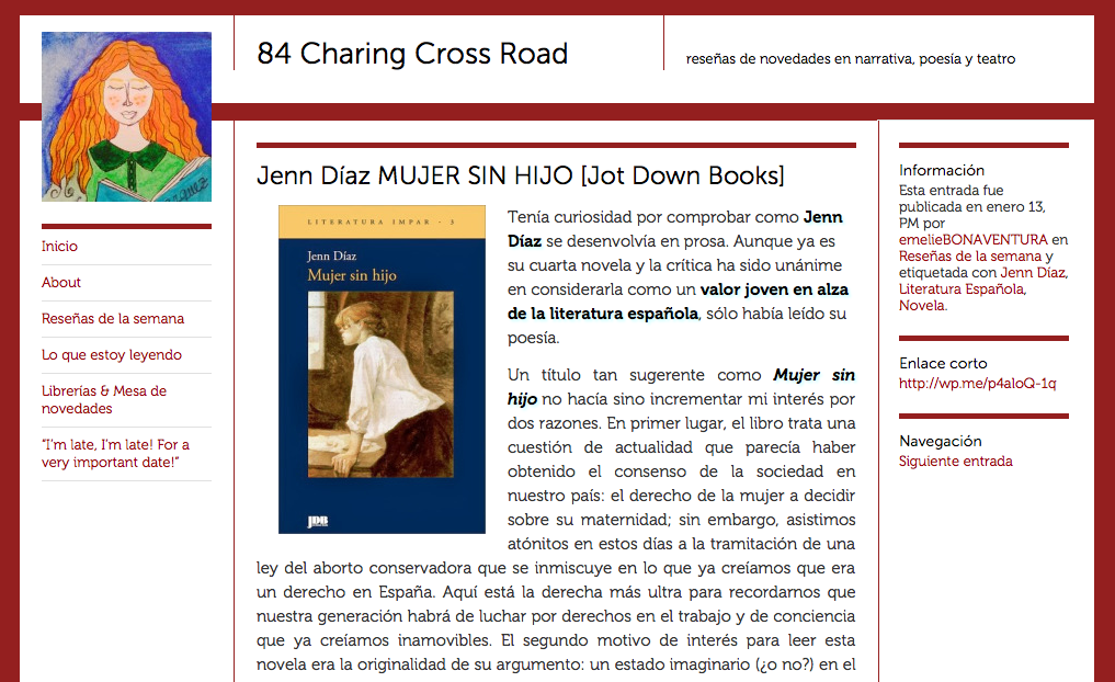 Pero ha sido una lectura agridulce. Me ha sabido a poco. Me explico. Los mismos elementos que juegan a favor de la novela, la sencillez de estilo, las historias conmovedoras y la construcción de los personajes, saben a poco cuando llegas al final de ella. A medida que avanzaban las páginas, me he encontrado expectante como lectora, a la espera de algún giro inesperado en las historias o ante el descubrimiento de algún aspecto imprevisible en el carácter de los personajes principales. Esos momentos no han llegado. Y es que creo que Díaz no acaba de aprovechar plenamente el escenario de opresión tan asfixiante contra las mujeres que imagina (la coerción gubernamental sobre la maternidad) para romper en algunos momentos del relato con tanta sobriedad estilística y sorprender al lector con un viraje insospechado en la conclusión de las historias.
